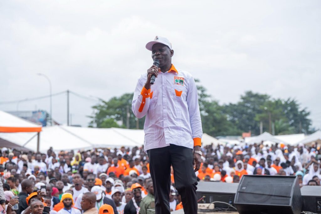Pour Adama Bictogo, maire de la commune et directeur régional de campagne, ce raz-de-marée « traduit l’unité retrouvée d’une grande famille politique ». « À Yopougon, la division ne passera pas ! », a-t-il lancé sous les applaudissements nourris de la foule, avant d’exécuter le “coup de marteau” symbolique aux côtés de l’artiste Tamsir.