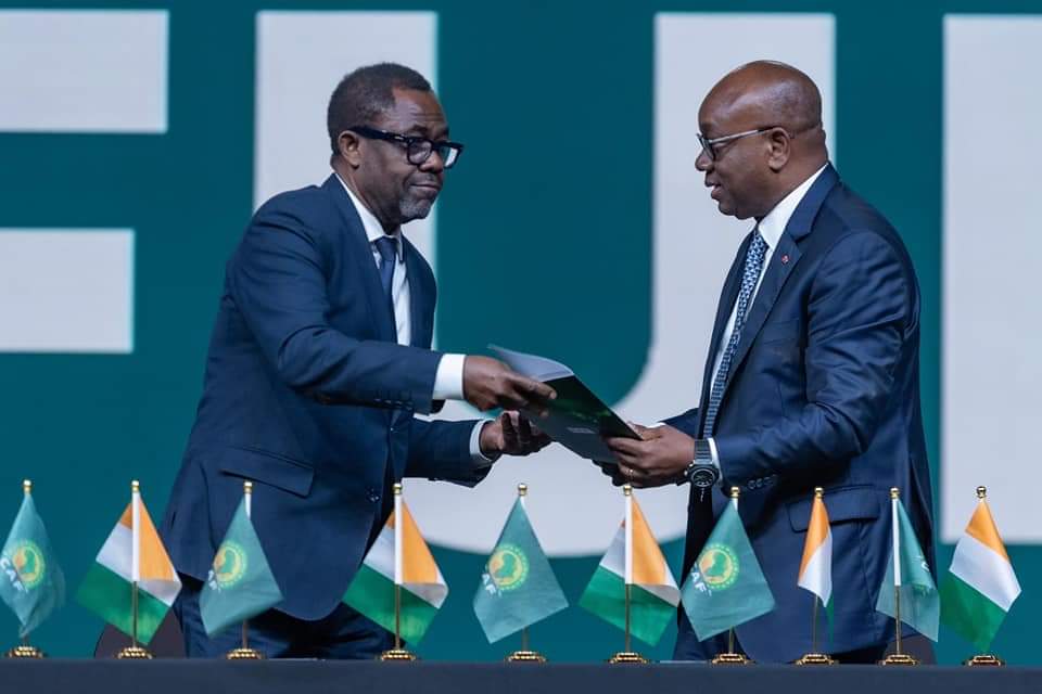 Le Secrétaire Général de la CAF, M. Veron Mosemgo-Omba et le Président de la Fédération Ivoirienne de Football (FIF), M. Yacine Idriss Diallo, ont paraphé le « Legacy Fund » qui représente 20% de l’apport de tous les partenaires qui ont associé leur image à la CAN qui s’est déroulée en Côte d’Ivoire.
