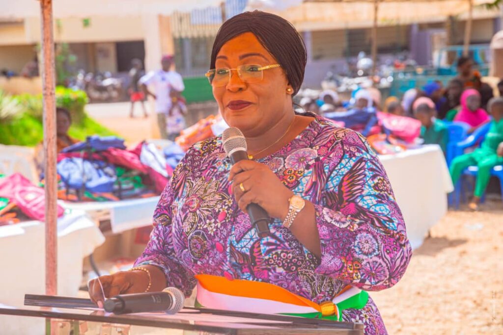 « Cette remise de kits scolaires obéit à la même vision que le Chef de l’Etat Sem Alassane Ouattara a pour l’école, qui est un des piliers du développent de la Côte-d’Ivoire. Et lorsque l’on parle de la Côte-d’Ivoire il y a les localités sur tout le territoire. Nous sommes dans une collectivité, nous sommes dans le département d’Arrah situé dans la région du Moronou. C’est donc un plaisir et un bonheur de renforcer le système éducatif de ce département au même titre que les autres », a déclaré Madame le maire.