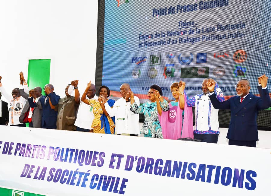 GROUPEMENT DE PARTIS POLITIQUES ET D’ORGANISATIONS DE LA SOCIÉTÉ CIVILE POINT DE PRESSE COMMUN ABIDJAN, LE VENDREDI 9 AOÛT 2024