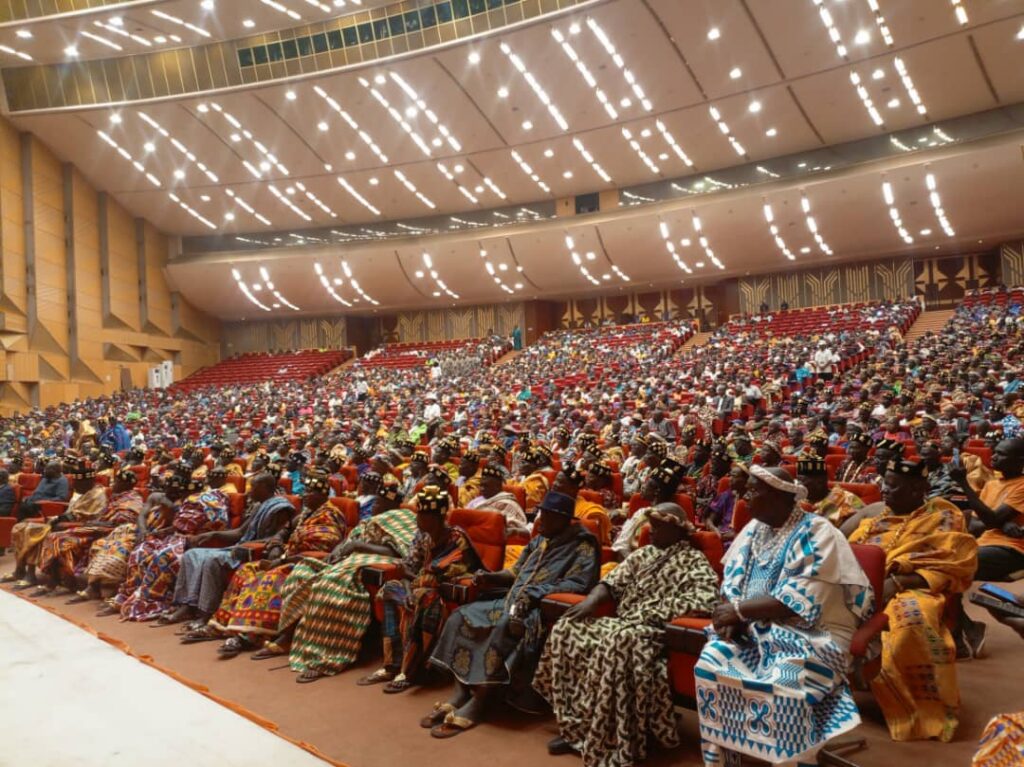 Le samedi 26 juillet 2025, la salle de la Fondation Félix Houphouët-Boigny pour la recherche de la paix à Yamoussoukro a vibré au rythme des tambours traditionnels. Les chefs de campements, de villages et les communautés baoulé, membres de l’association FAMIEN des producteurs de café-cacao, y ont officiellement investi Nanan Bokôssô 1er à leur tête. Un moment empreint de solennité et de symboles.