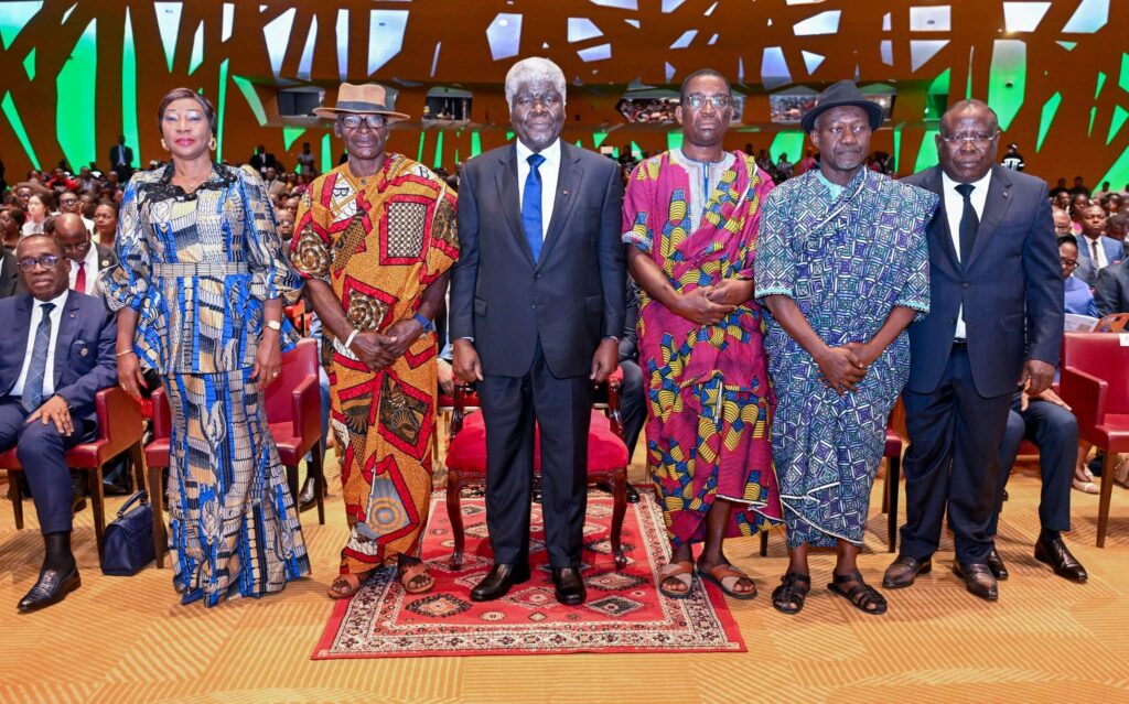 L’événement a réuni un impressionnant parterre de personnalités, parmi lesquelles Dr Eugène Aka Aouélé, président du Cesec, Kandia Camara, présidente du Sénat, et Ally Coulibaly, grand chancelier de l’Ordre national.
