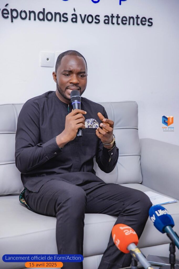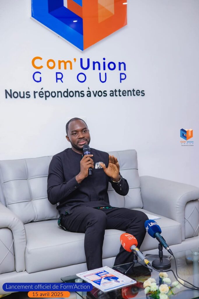 Le Directeur Général de COM’Union Group M. Casimir Kouassi, a animé,ce mardi 15 avril 2025, à son siège, sis à Cocody Palmeraie, Cité Sir, Abidjan/Cocody, une conférence de presse marquant le lancement officiel de ce projet de formation innovant dénommé, Form’Action Pro.