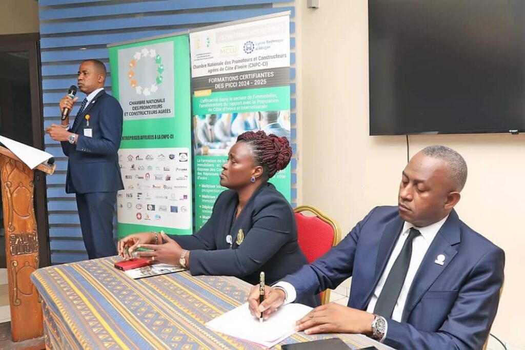 La Chambre Nationale des Promoteurs et Constructeurs Agréés de Côte d’Ivoire (CNPC-CI) a tenu sa réunion trimestrielle, ce Vendredi 22 novembre 2024, dans la commune de Cocody, cérémonie tenue en présence d’une Pléiade de personnalités du monde de l’immobilier en Côte d’Ivoire.