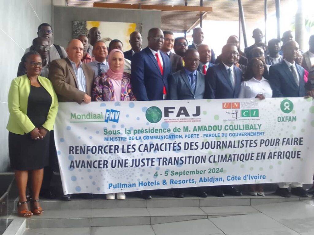 La Fédération Africaine des Journalistes (FAJ), en collaboration avec l’Union Nationale des Journalistes de Côte d’Ivoire (UNJCI), a organisé une Conférence continentale sur la justice climatique les 4 et 5 septembre 2024 à l’Hôtel Pullman Abidjan-Plateau.