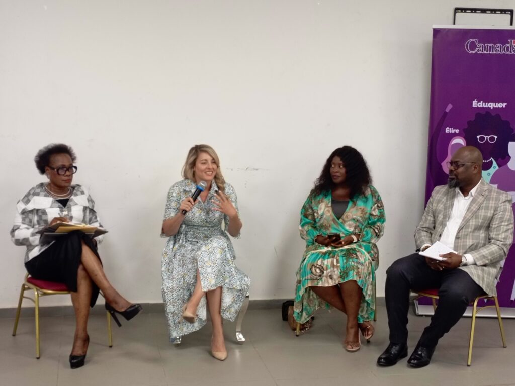 Cet événement a été organisé par l’Ambassade du Canada en Côte d’Ivoire, en partenariat avec le Réseau des femmes journalistes et des professionnelles de la communication de Côte d’Ivoire. Le panel de discussion comprenait, outre Mme Joly, Agnès Kraidy, présidente du Réseau des femmes journalistes, la journaliste Evelyne Débat, et Coulibaly Pelibien Ghislain, président du Réseau des hommes engagés pour l’égalité des genres.