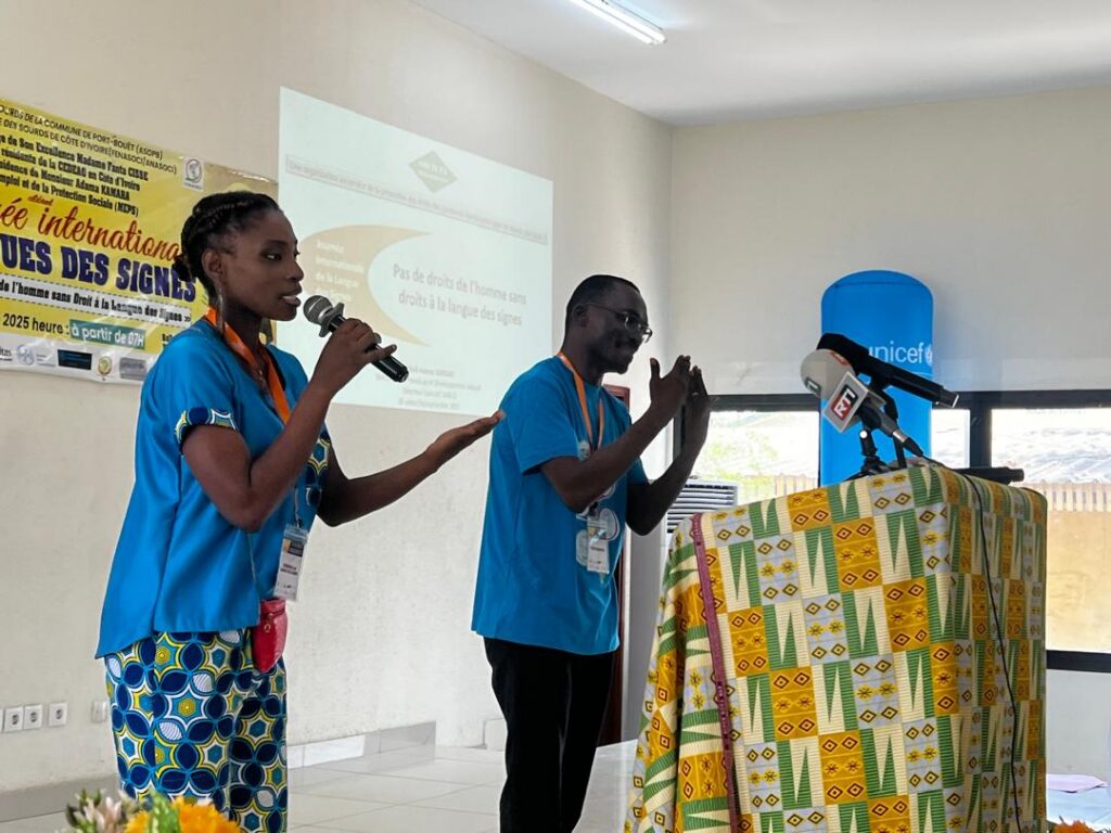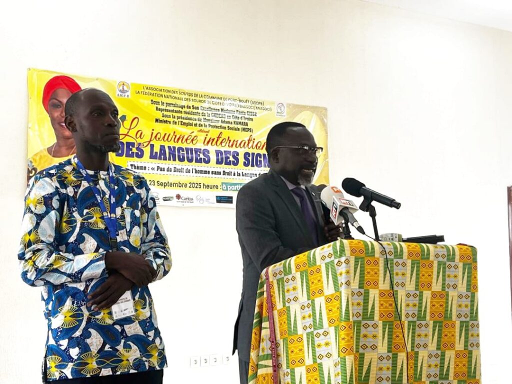 « Sans la langue des signes, il n’y a pas de droit à l’éducation, pas de droit à l’information, pas de droit à la santé », a martelé Bony Maho Albert, PCA de la FENASOCI.