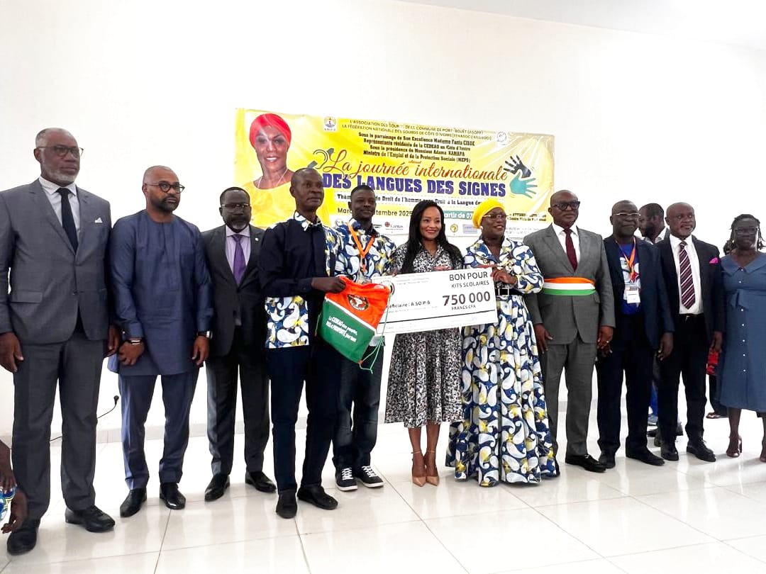 Organisée par la Fédération nationale des sourds de Côte d’Ivoire (FENASOCI) en collaboration avec l’Association locale, cette cérémonie s’est tenue sous la présidence du ministère de l’Emploi et de la Protection sociale, autour du thème : « Pas de droits de l’Homme sans droits à la langue des signes ».