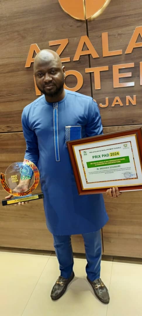 Cet événement a mis en avant les réalisations exceptionnelles dans le domaine de l’architecture urbaine, de l’aménagement urbain et du design intérieur, M. Bréhima Soumaré, Directeur général de la Société Soumaré Studio, basée au Mali, a été honoré pour ses contributions remarquables dans ces domaines.