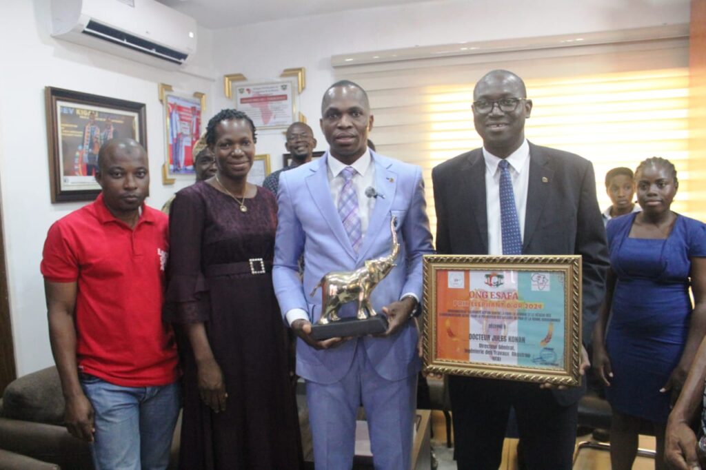 L’Organisation Non Gouvernementale Environnement Solidarité et Action Contre la Faim en Afrique (ESAFA), en partenariat avec le Réseau des Communicateurs pour la Promotion des Valeurs de Paix et de Bonne Gouvernance en Côte d’Ivoire (RCVPBG), a décerné le Prix Sectoriel Éléphants d’Or et un trophée d’excellence au Docteur Jules Konan, Directeur Général d’Ingénierie et Travaux Akoutrou (ITA SARL).