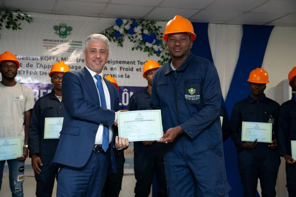 Une nouvelle génération de techniciens qualifiés. Sous un ciel chargé d’émotion et d’espoir, 104 jeunes, issus des cinq premières cohortes de l’École de la Deuxième Chance, ont reçu mardi 4 novembre 2025, au Lycée technique de Cocody, à Abidjan, leur Certificat de Qualification Professionnelle (CQP) en froid et climatisation. Parmi eux, 13 apprenants venus de la sous-région : Guinée-Bissau, Burkina Faso, Mali et Nigeria. Un signe fort d’ouverture et de coopération africaine.