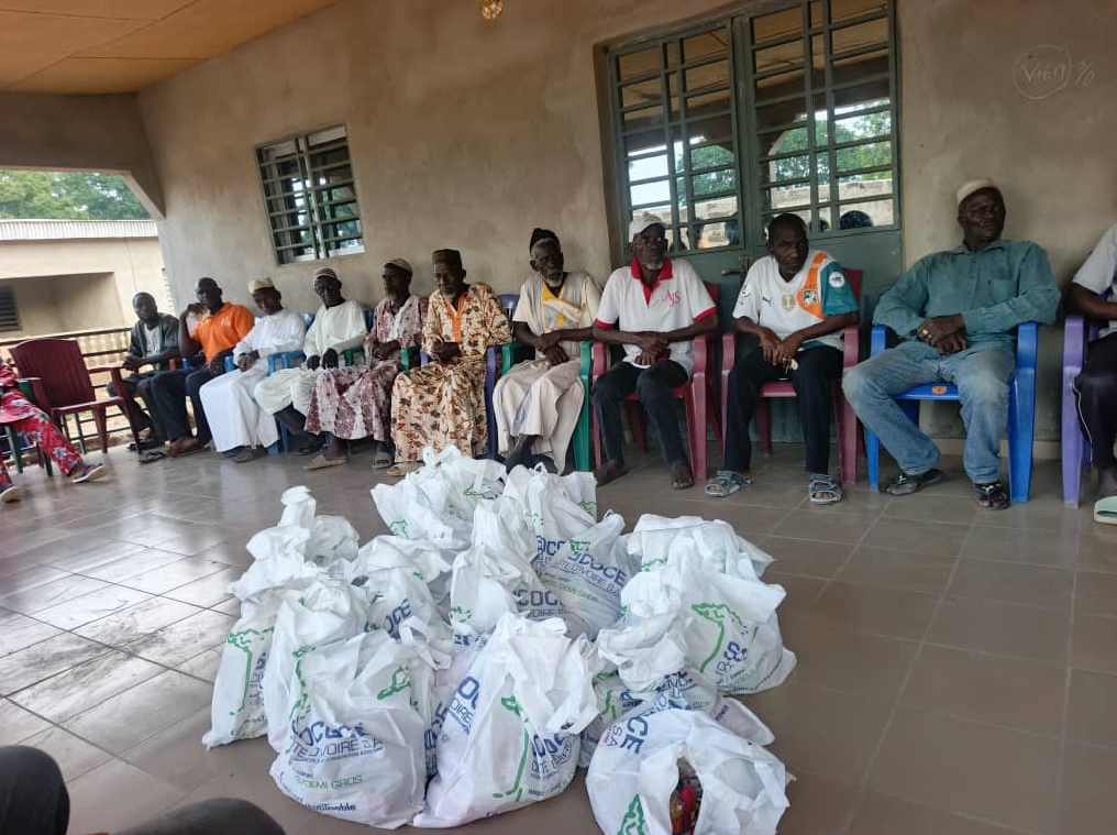 En 2024, nous avons réalisé plusieurs actions significatives. Nous avons aidé les villages de Touna et de Konogô, touchés par des incendies de brousse, en distribuant des vivres et des non-vivres. Nous avons également offert des kits scolaires à des élèves vulnérables, organisé un arbre de Noël pour les enfants à Séguéla, et un tournoi de football, le « Trophée de la Fraternité et de la Cohésion ». En 2025, nous avons lancé une caravane de solidarité pour le Ramadan, distribuant des kits alimentaires aux personnes vulnérables.