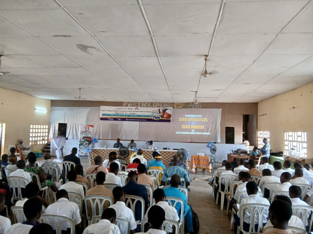 Le vendredi 21 mars 2025, le Rotary Club Abidjan Excelsior a marqué un temps fort dans son engagement pour la jeunesse ivoirienne en organisant une journée de sensibilisation au Lycée Moderne Amon Tanoh Lambert d’Aboisso. Placée sous le thème « Zéro Grossesse et Zéro Drogue en milieu scolaire », cette initiative a été menée en partenariat avec le Rotary Club Makati North des Philippines.