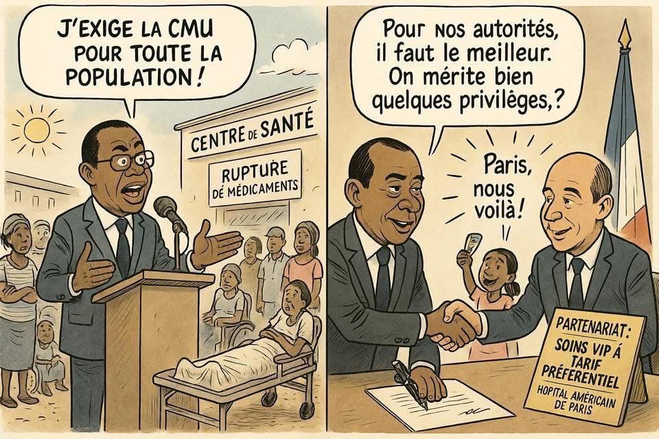 Or, lors du journal télévisé de 20h sur la RTI, considéré comme une heure de grande écoute, un reportage a montré la signature d’une convention entre la Côte d’Ivoire et la compagnie Corsair. Cette convention vise à réduire les tarifs aériens des officiels ivoiriens, de leurs proches et familles, tout en leur facilitant l’accès au prestigieux hôpital américain de Paris.