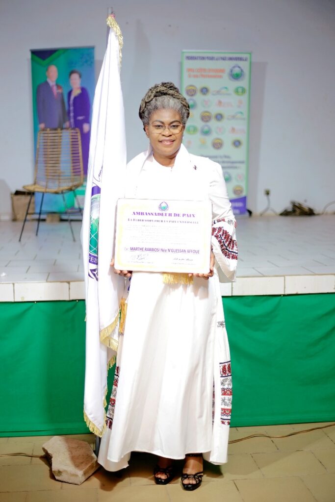 Avec cette distinction, Marthe RABBIOSI rejoint la grande famille des Ambassadeurs de Paix, résolue à poursuivre son œuvre pour une Côte d’Ivoire unie, apaisée et tournée vers un avenir harmonieux. Pour elle, la paix se construit avant tout dans les cœurs… un sourire à la fois.
