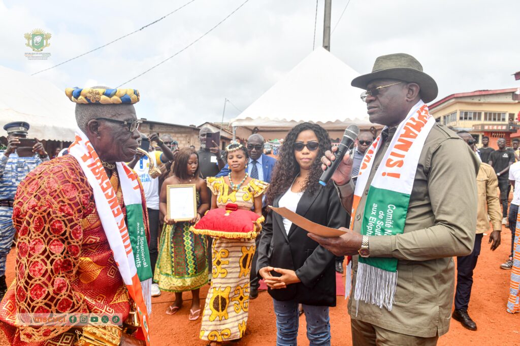Cette distinction honorifique lui a été remise par le Ministre délégué en charge des Sports et du Cadre de Vie, Adjé Silas Metch, en présence du sous-préfet de Dabou, Mme Soro Minata, de la Directrice Générale des Sports, Mme Kinimo Fêtai Hortense, ainsi que des chefs de villages et chefs coutumiers.