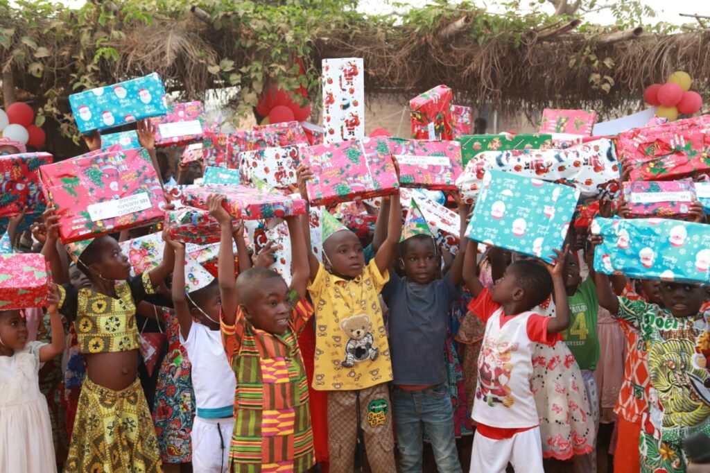 Après ce moment de réflexion, le Père Noël Olivier Akoto, accompagné de ses équipes, a distribué des jouets, des vêtements et des bonbons à plus de 500 enfants. Dans une ambiance festive, les enfants ont chanté, dansé et exprimé leur joie, enveloppés par l’atmosphère chaleureuse de Noël.