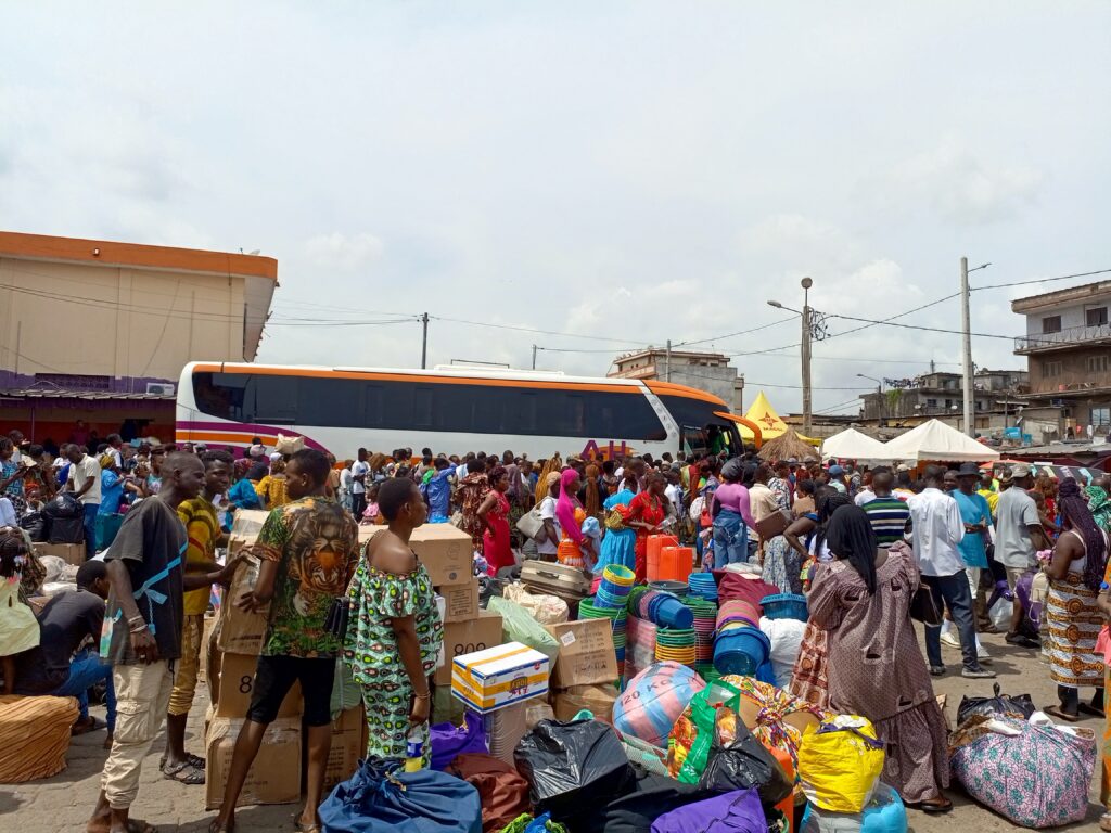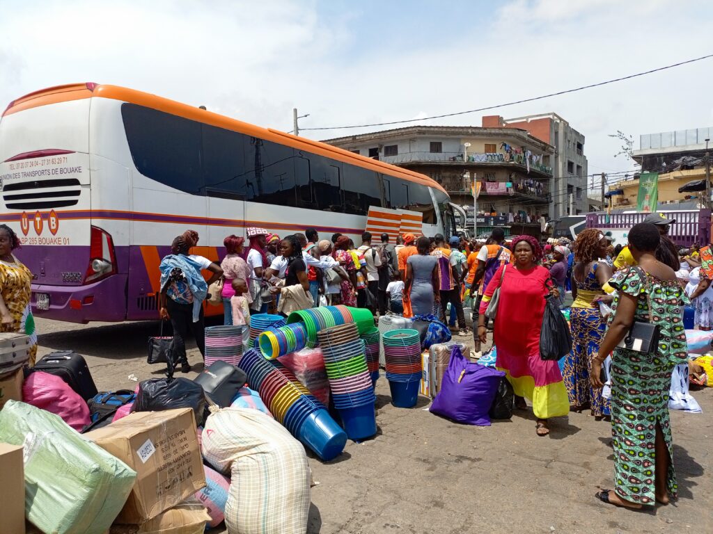 Hommes, femmes et enfants, valises et ballots entassés, attendent fébrilement leur départ pour l’intérieur du pays. La Pâques, célébrée cette année le 20 avril, rime avec grands départs. Et chez les Baoulé, elle prend une tournure unique : c’est “Paquinou”, la grande fête des retrouvailles familiales et communautaires.