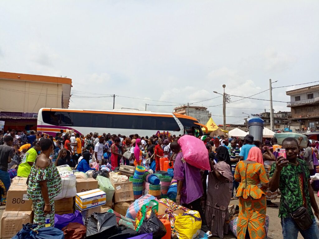 Le décor à Adjamé est bouillonnant : klaxons stridents, vendeurs ambulants haranguant les passagers, haut-parleurs diffusant des musiques festives. Mais derrière l’ambiance festive, certains s’impatientent. «Je suis venue à 5 heures et je suis au 10e départ. Je voulais arriver au village tôt…», regrette dame Kouassi véronique, visiblement fatiguée.