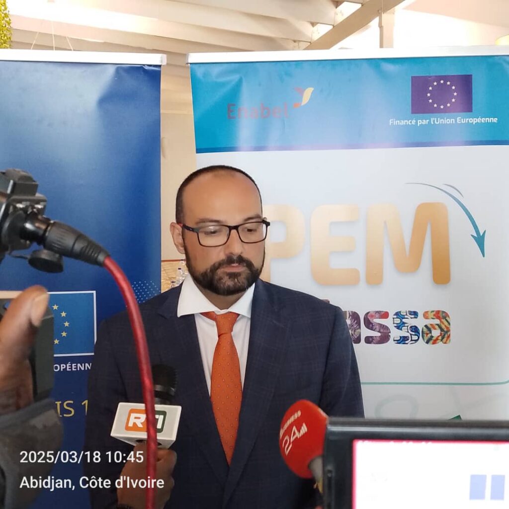 De son côté, M. Alessio Salvador, Directeur Pays d’Enabel Côte d’Ivoire, a rappelé que le projet est financé par l’Union européenne et vise à renforcer les échanges économiques et commerciaux entre les entreprises ivoiriennes et européennes.