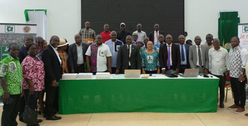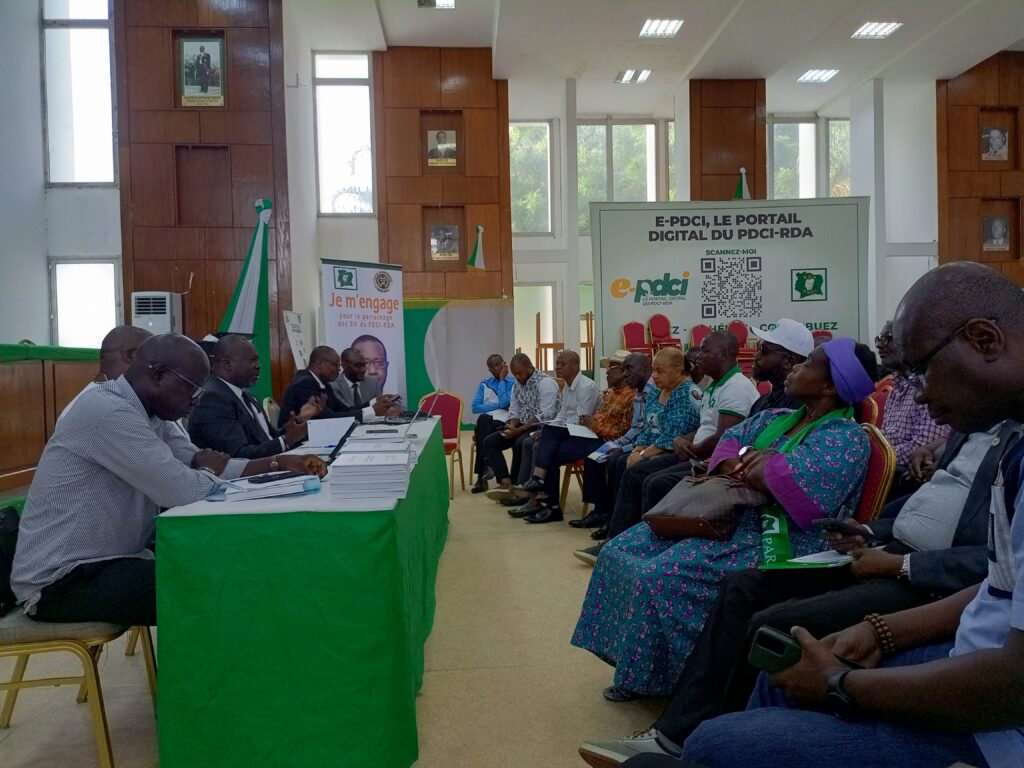 Une grande Réunion de l’équipe de pilotage du projet de parrainage des bureaux de vote s’est tenue, le mardi 8 avril 2025, à l’Auditorium du siège du PDCI-RDA à Cocody. Cette rencontre stratégique, marquée par une forte mobilisation des cadres et militants, a permis à l’honorable Jean Michel Amankou de dresser un état des lieux de la situation politique du parti, tout en appelant à une implication plus accrue des parrains dans la perspective de la présidentielle de 2025.