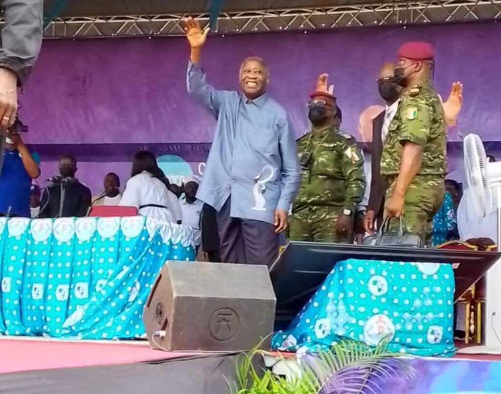 Laurent Gbagbo a esquissé son programme : école pour tous, accès aux soins via l’Assurance Maladie Universelle, soutien aux jeunes et aux femmes par une banque dédiée, et surtout lutte contre la dette.