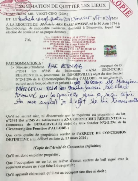 Le doyen d’âge de notre génération Tchagba au pouvoir, Aké Akré Gervais ne faisant pas partie de la chefferie a par exemple été sommé par un acquéreur possédant un ACD de quitter son lot qui lui avait été attribué.