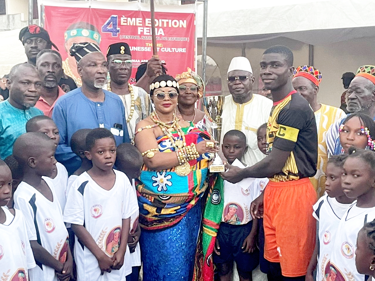 Cette finale de Football a été marquée par la présence effective de Sa Majesté, NANA KYEREMAA ABRAFI KOTO ( reine mère des communautés des peuples de la CEDEAO d’Afrique ), ainsi que le Chef d’Anoumabo, Nanan Vry Amon Thomas, et de plusieurs chefs coutumiers et religieux.
