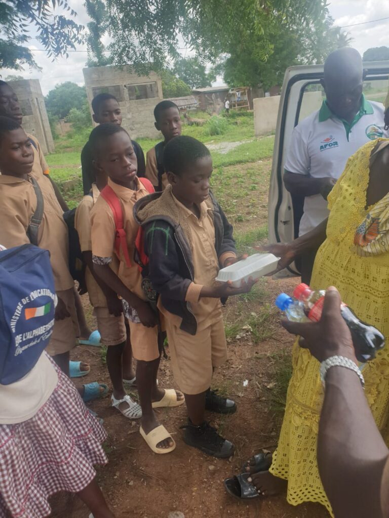 Les kits offerts se composent de bouteilles d’eau minérale, de limonades sucrées et d’un repas chaud. Des éléments simples, mais ô combien importants pour ces jeunes enfants souvent stressés par l’enjeu de l’examen. « Ce geste vise à encourager nos enfants à donner le meilleur d’eux-mêmes, tout en leur montrant que la communauté les soutient », a déclaré Jean Hallyman Koissi, tout sourire face aux écoliers.